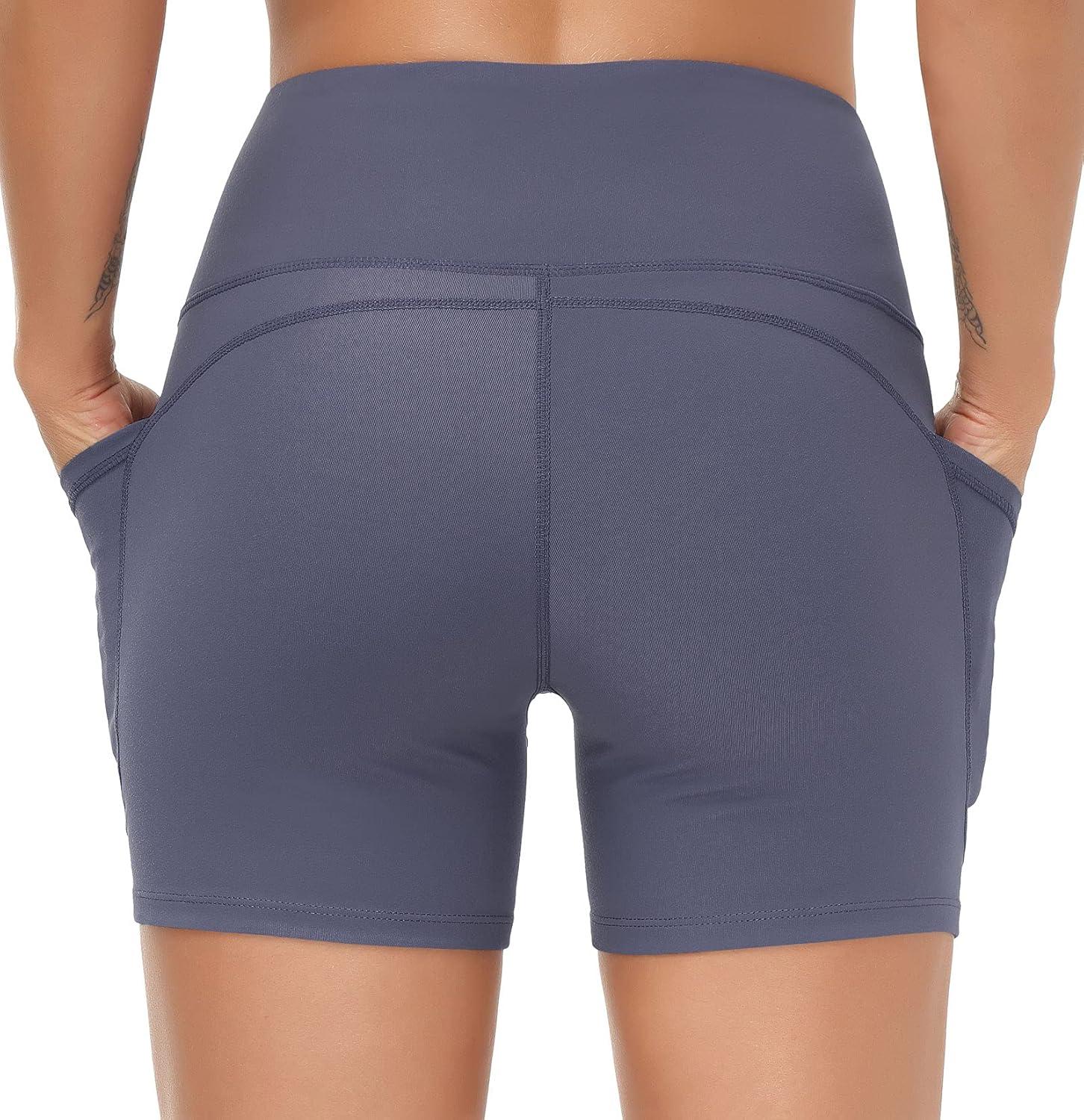 THE GYM PEOPLE High Waist Yoga Shorts for Women’s Tummy Control Fitness Athletic Workout Running Shorts with Deep Pockets(Grey Purple)