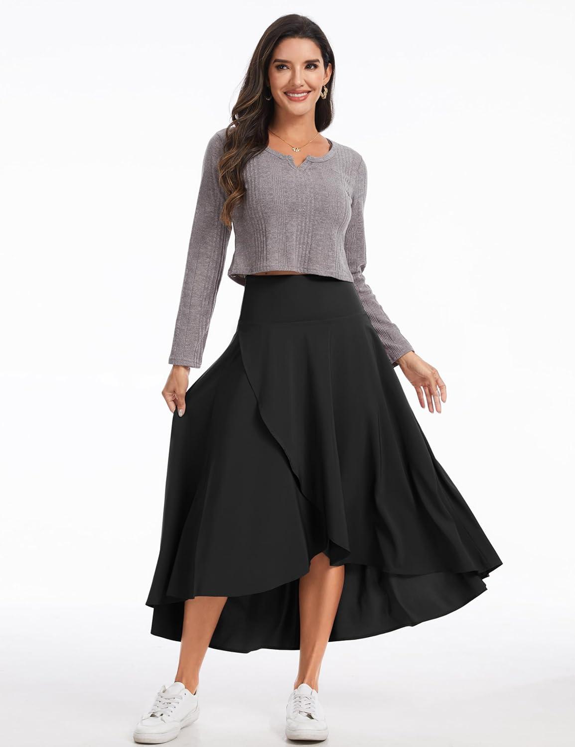 Be the first to review “THE GYM PEOPLE Women’s High Waist Flowy Maxi Skirts Ruffle High Low Hem Asymmetric Wrap Long Skirt Built-in Shorts(Black)” Cancel reply