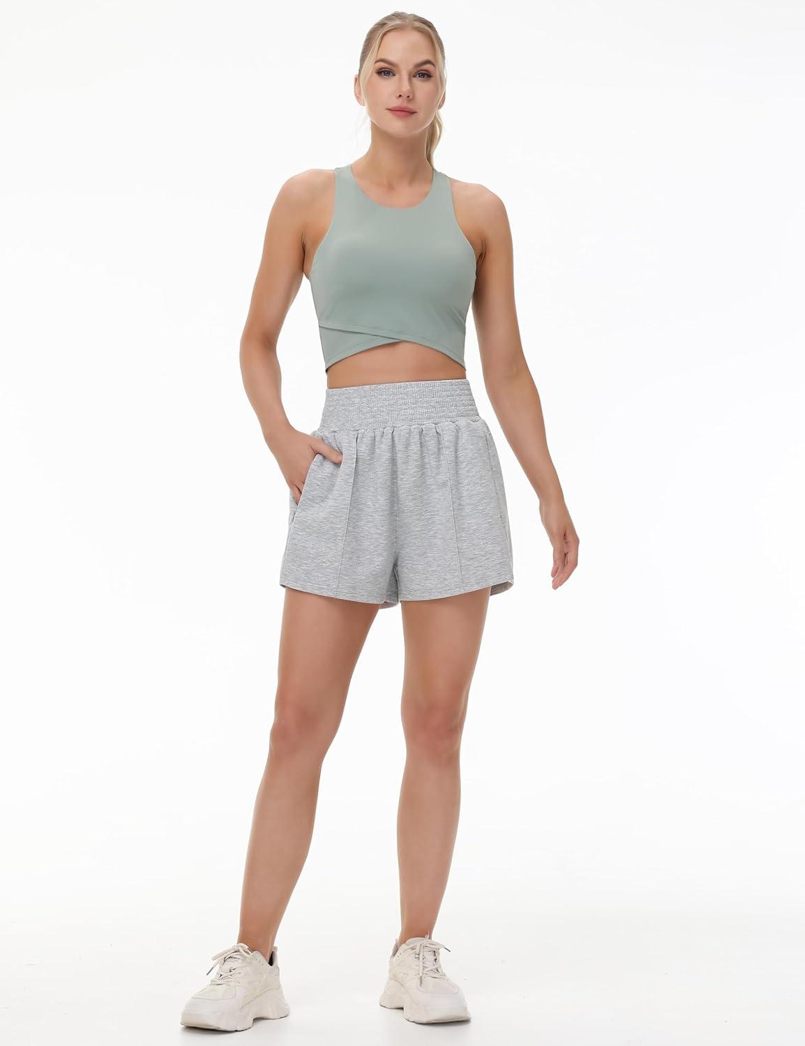 THE GYM PEOPLE Women's High Waist Sweat Shorts Ultra Soft Stretchy Lounge Running Athletic Shorts with Zipper Pockets(Light Heather Grey)