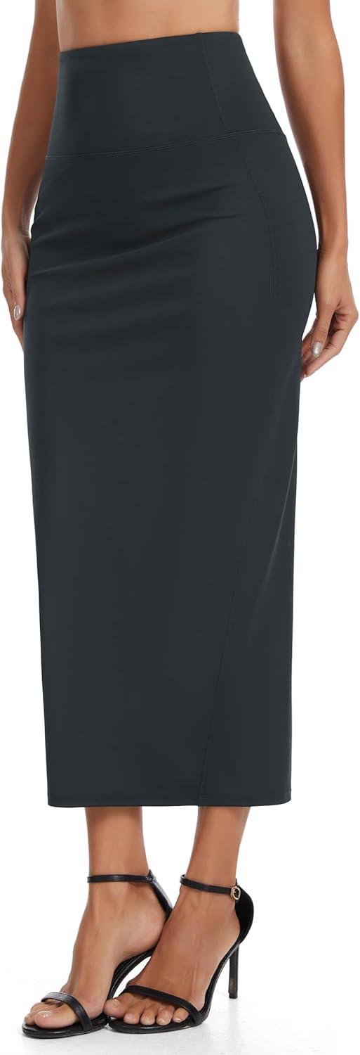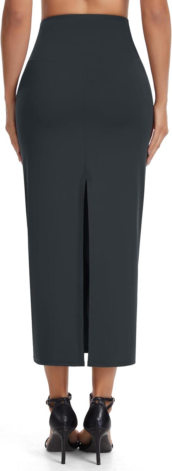 THE GYM PEOPLE Women's Long Pencil Skirt High Waist Stretchy Business Work Bodycon Maxi Skirts with Back Slit(Charcoal Grey)