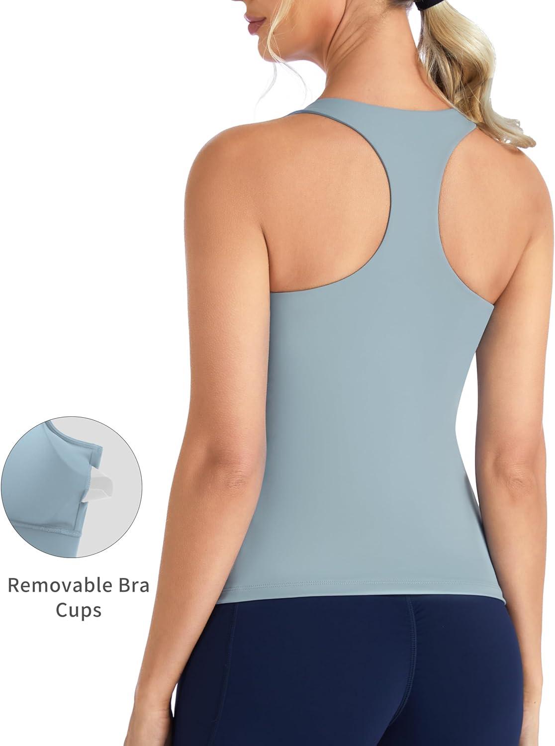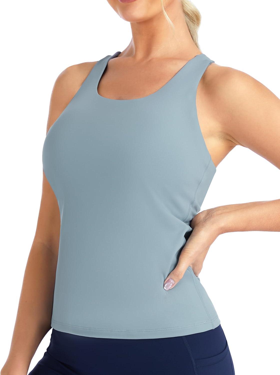 THE GYM PEOPLE Women’s Longline Yoga Sports Bra Racerback Slim Fit Sleeveless Padded Workout Tank Tops Built in Bra(Denim Blue)