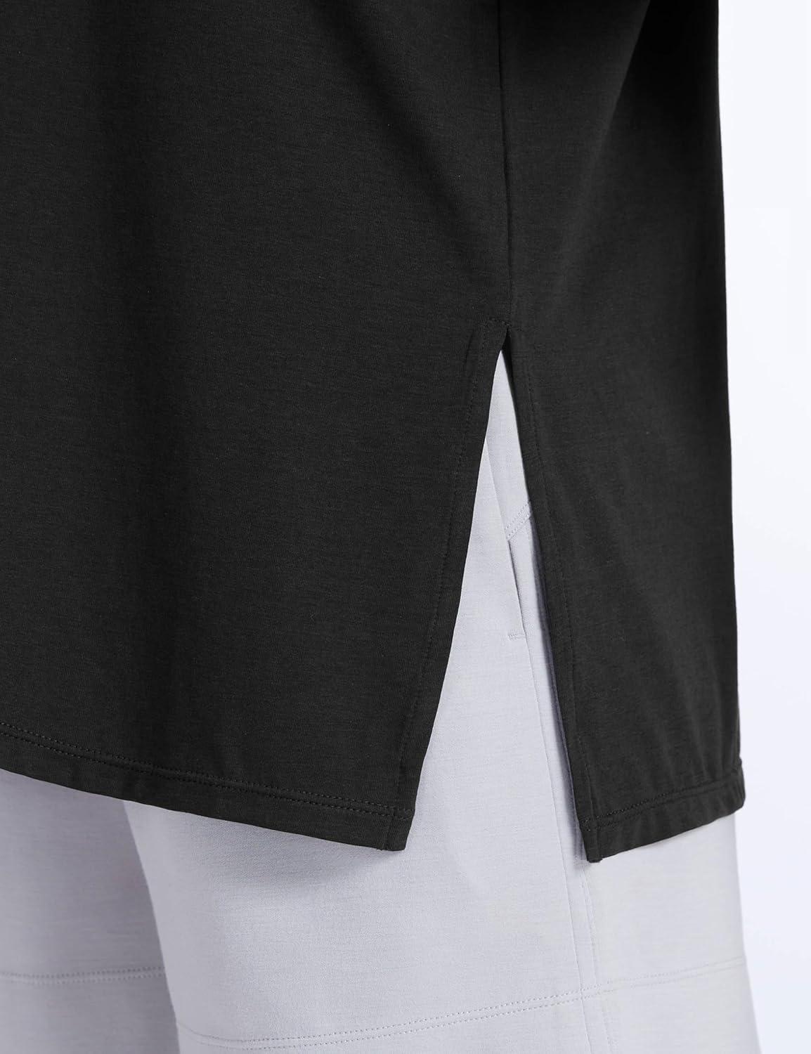 THE GYM PEOPLE Women’s Loose Fit Short Sleeve Workout T-Shirts with Side Slit Crewneck Summer Lightweight Casual Top Tees(Black)