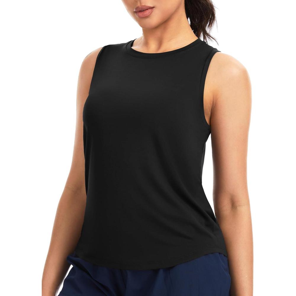 THE GYM PEOPLE Women’s Racerback Workout Tank Tops Soft Breathable Yoga Running Sleeveless Athletic Shirts(Black)