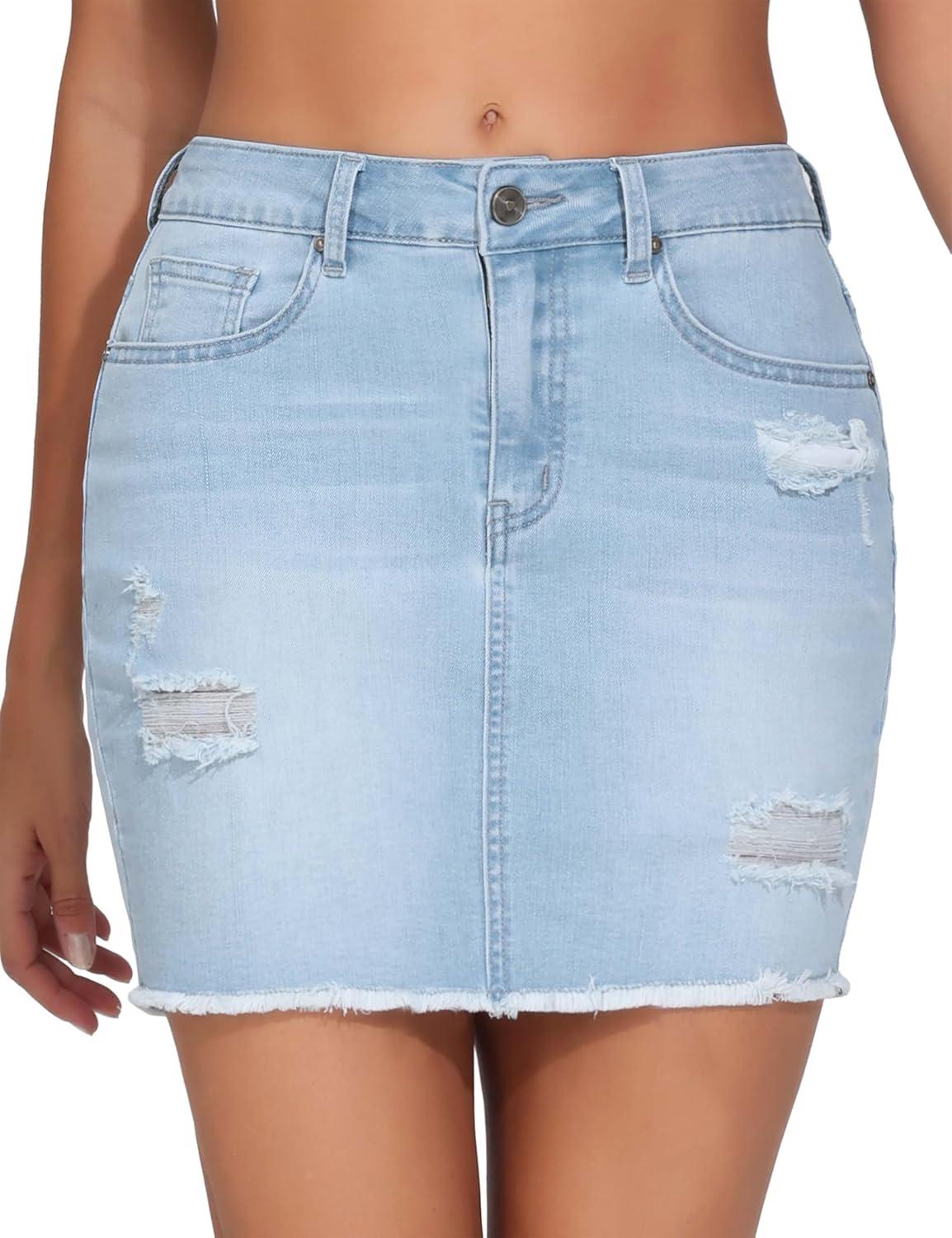 Be the first to review “THE GYM PEOPLE Women’s Ripped Denim Mini Skirts Stretchy Frayed Raw Hem Casual Trendy Jean Skirt with Pockets(Light Blue)” Cancel reply