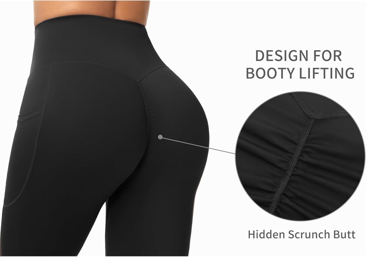 THE GYM PEOPLE Women's Scrunch Butt Lifting Yoga Pants High Waisted Stretch Athletic Workout Leggings with Pockets(Black)