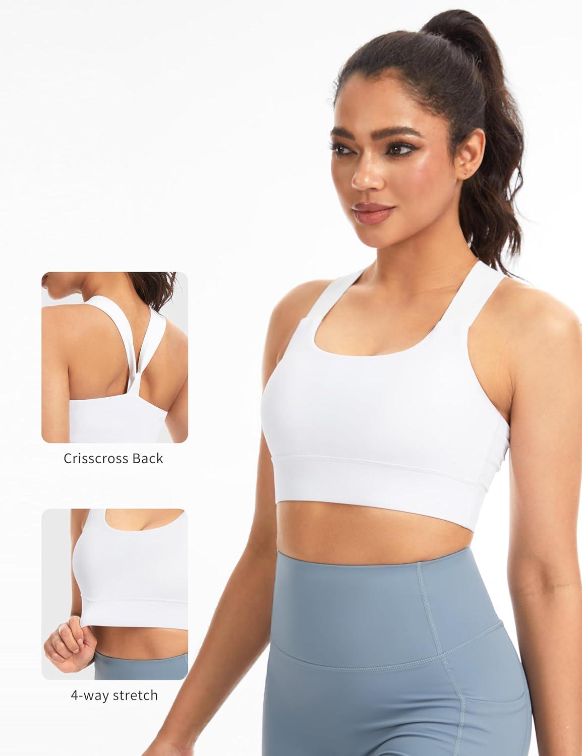 THE GYM PEOPLE Women’s V Cross Back Sports Bras Padded Stretchy Square Neck Running Workout Yoga Crop Tops