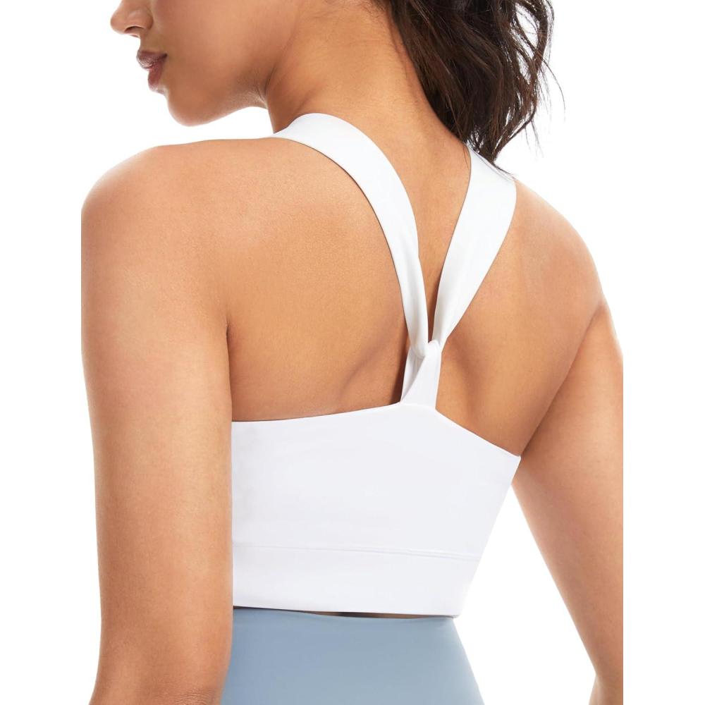 imageTHE GYM PEOPLE Womens V Cross Back Sports Bras Padded Stretchy Square Neck Running Workout Yoga Crop Tops