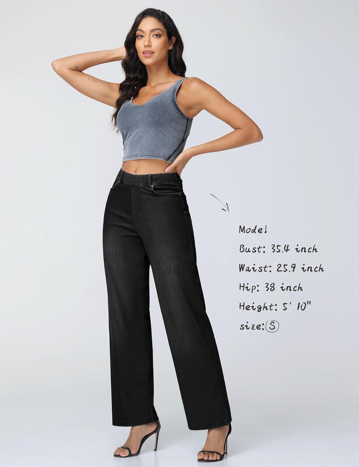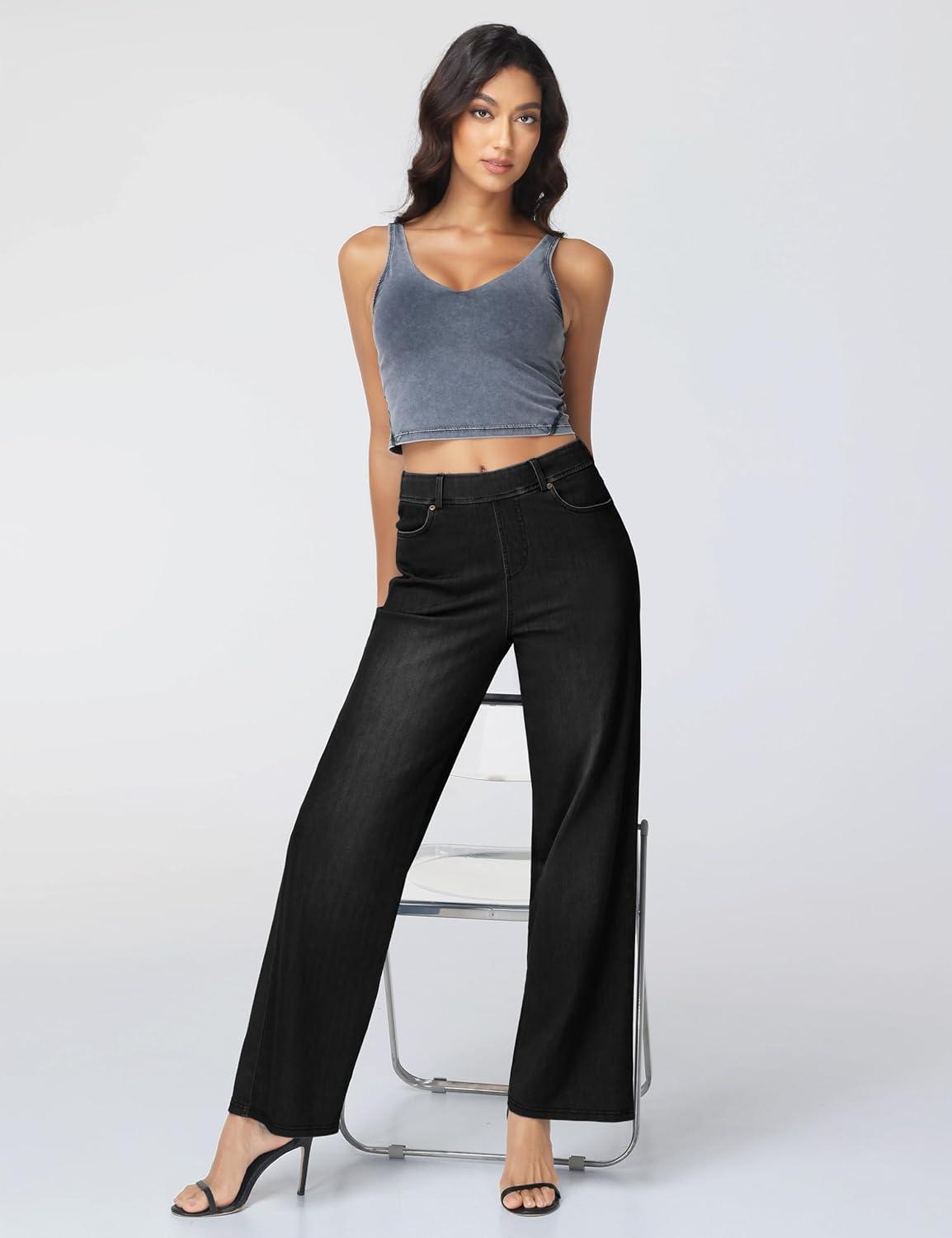 Be the first to review “THE GYM PEOPLE Women’s Wide Leg Pull on Jeans Stretchy Baggy Trendy Casual Straight Denim Pants with Pockets(Black)” Cancel reply