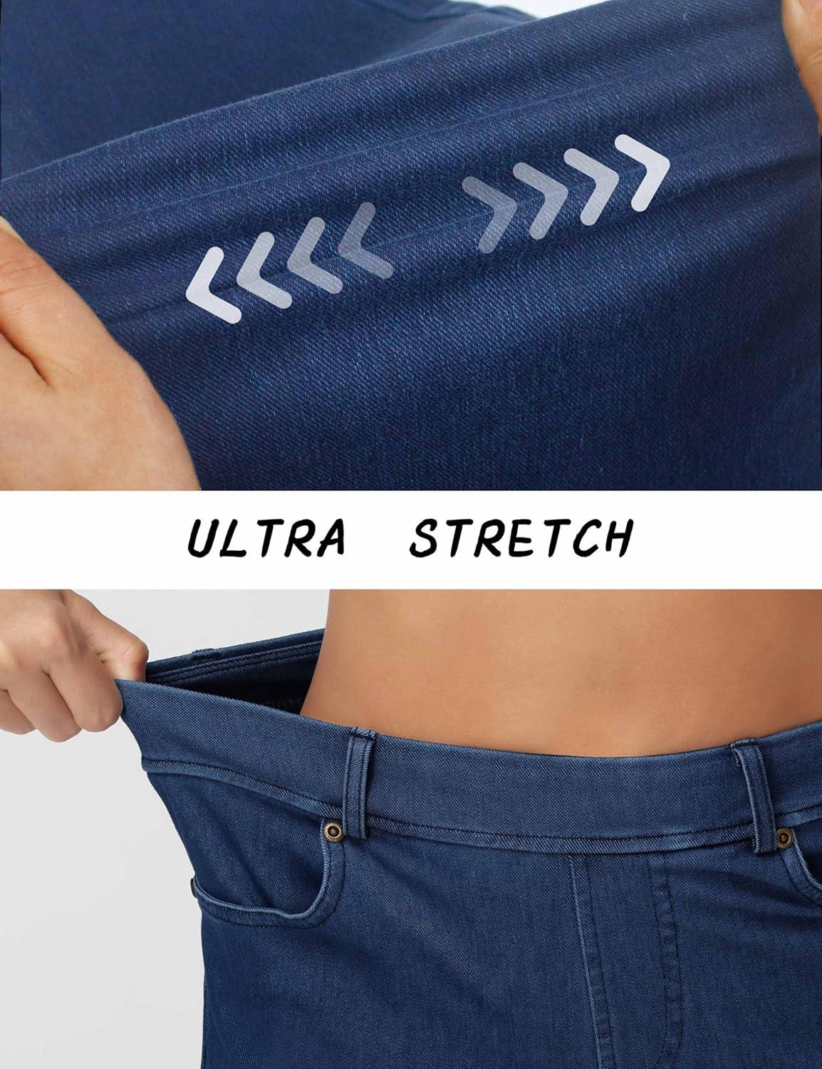 THE GYM PEOPLE Women’s Wide Leg Pull on Jeans Stretchy Baggy Trendy Casual Straight Denim Pants with Pockets(Dark Blue)